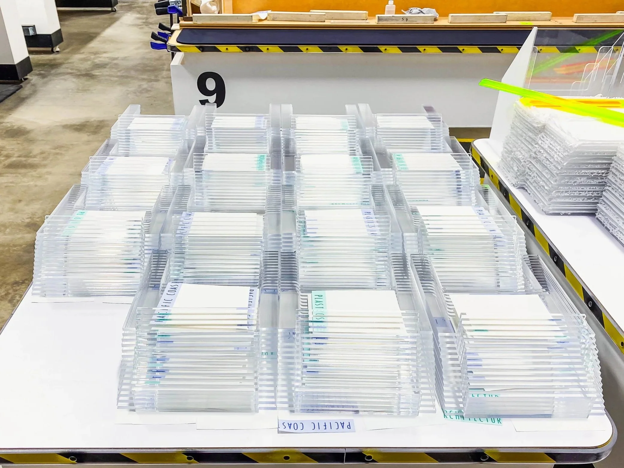 We maintain a large in-stock inventory of acrylic sheet to support fast CNC turnaround and reduce delays tied to material sourcing. Our material handling and storage infrastructure allows us to machine standard sheet sizes as well as oversized acrylic sheets up to 88″ × 150″, supporting large panels and single-piece components that would otherwise require seams or secondary assembly.